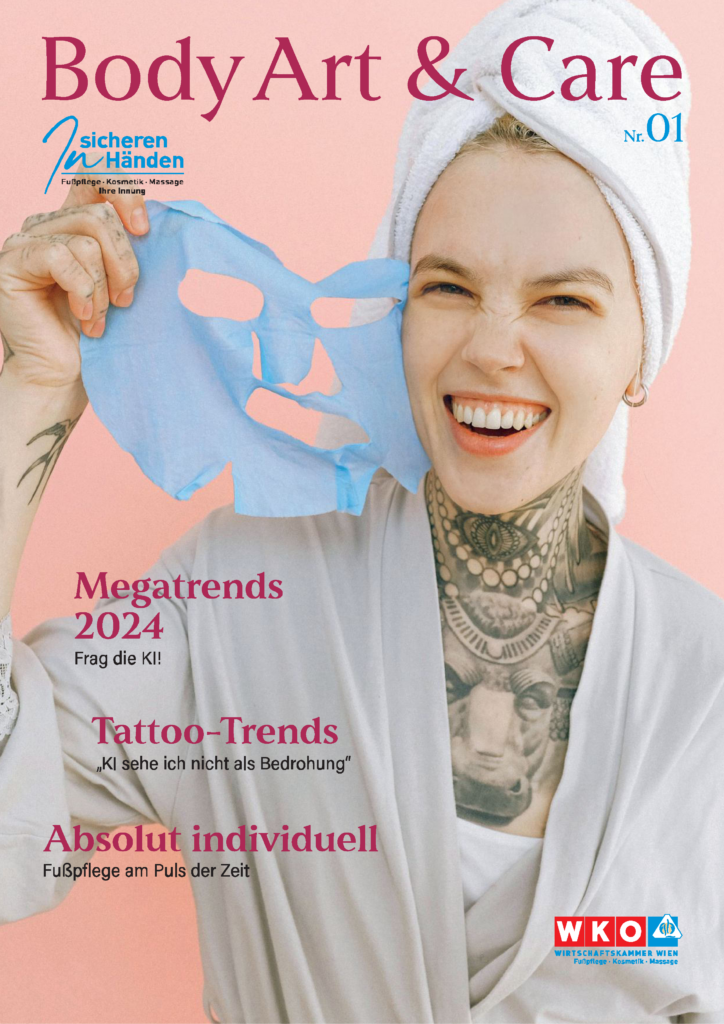 Mitte Mai ist die erste Ausgabe der neuen Innungszeitung Body Art & Care erschienen. Das übergreifende Thema dieser Ausgabe waren Trends (auch Pro und Contra) in den vertretenen Branchen – nachzulesen auf der Website der Wiener Innung.